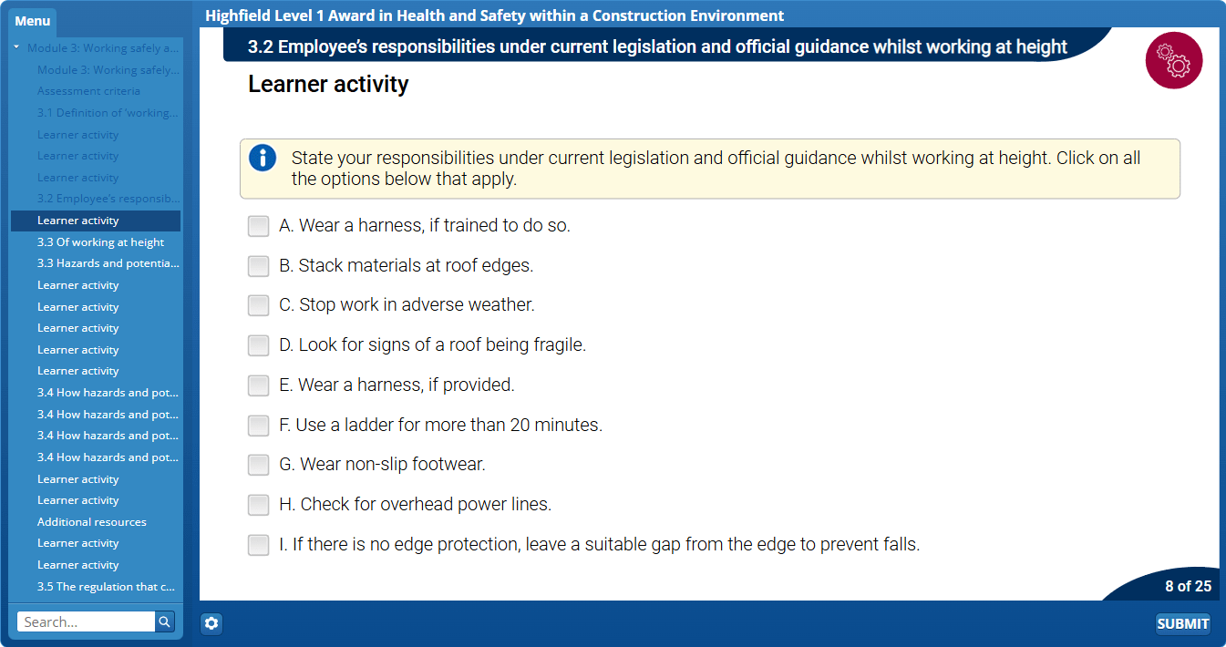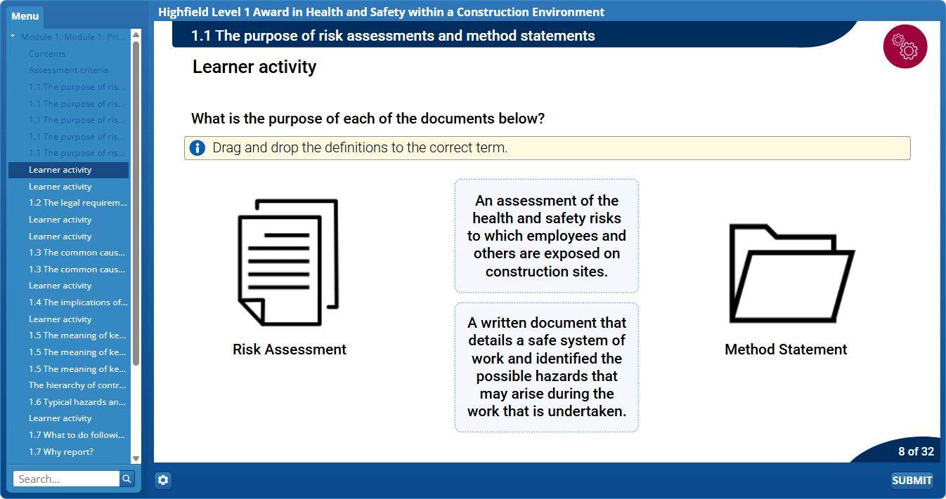 Highfield level 1 award in health and safety within a construction environment (RQF)